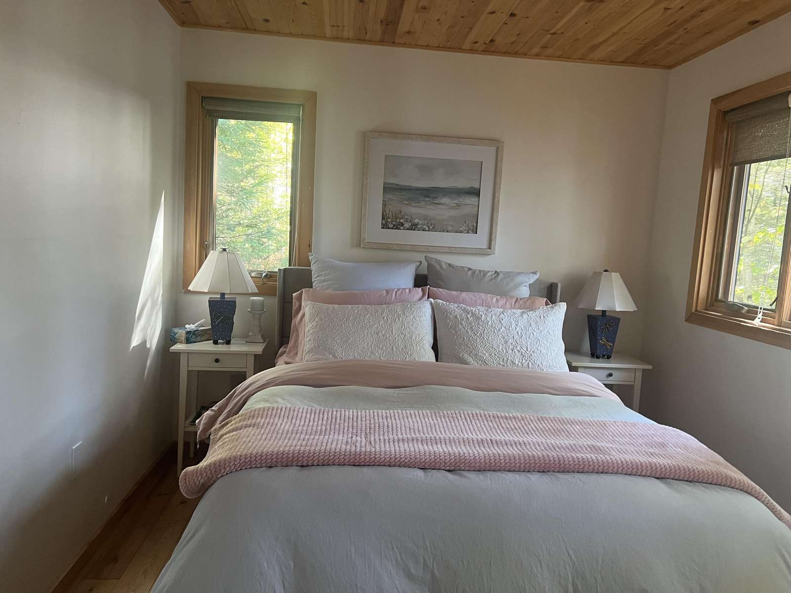 Master Queen bedroom retreat with soft natural light and serene views located upstairs