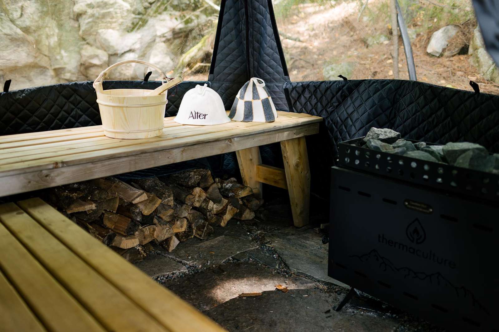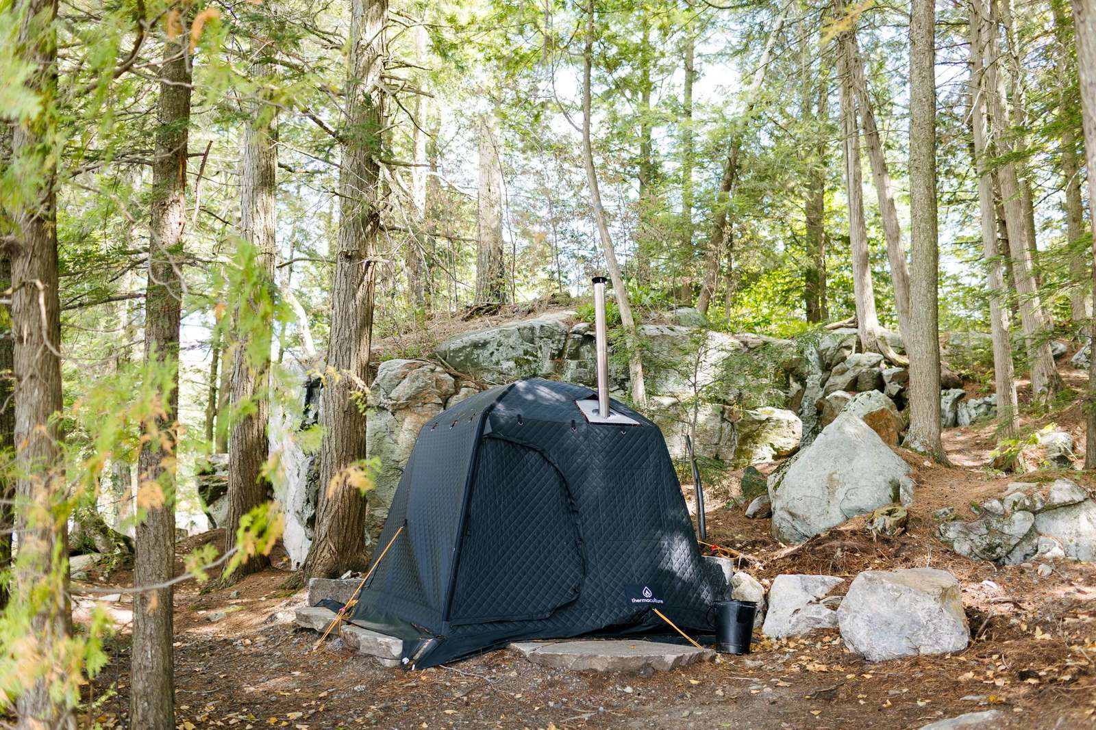 Unwind in the private lakeside inflatable sauna